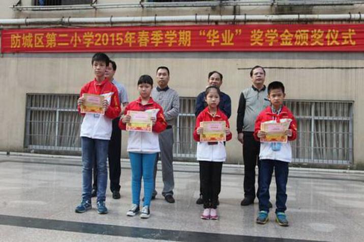 2015年3月17日,防城區(qū)第二小學(xué)舉行2015年開學(xué)典禮暨“華業(yè)”獎學(xué)金頒獎儀式,華業(yè)公司龍其偉總裁受邀出席,并發(fā)表講話。