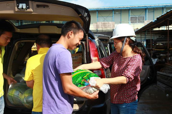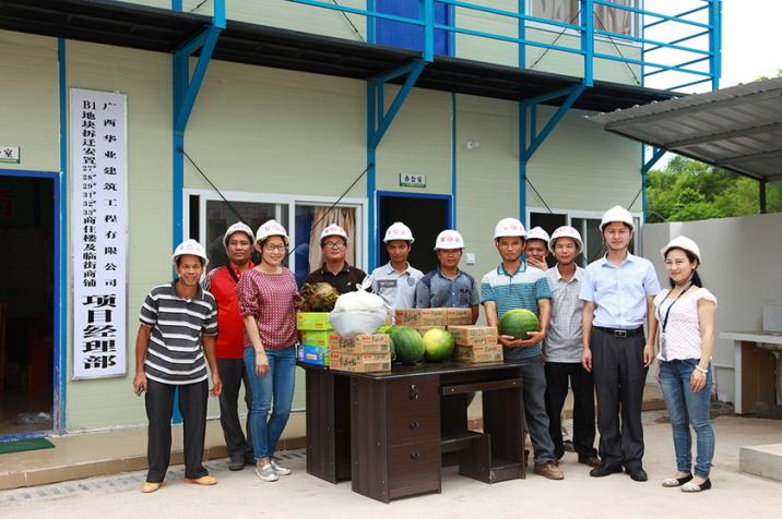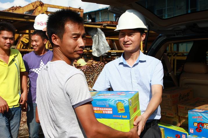 2015年6月16日,廣西華業(yè)建筑工程有限公司副總經理龐樹玉、華業(yè)公司工會主席鐘麗霞等一行到我公司各項目部開展送清涼活動,為各個項目部送上涼飲、生活用品等抗暑用品,并帶去公司領導的關懷與支持。