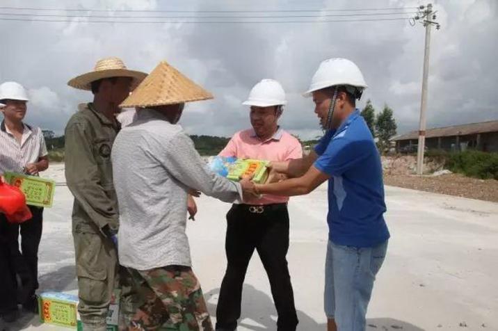 龍其偉總裁親切慰問防城港市防城區(qū)城南新區(qū)A-8道路工程項(xiàng)目部員工。