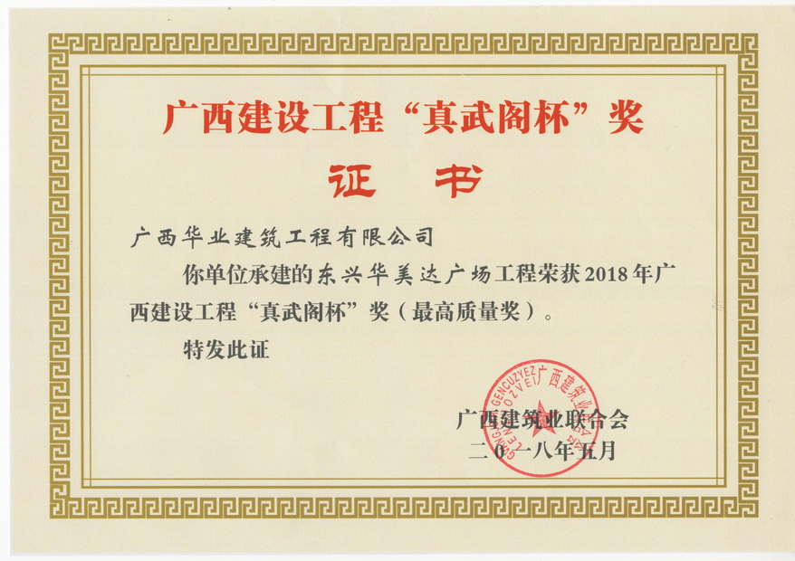 2018.5東興華美達(dá)廣場(chǎng)工程榮獲2018年廣西建設(shè)工程真武閣杯獎(jiǎng)(最高質(zhì)量獎(jiǎng))..
